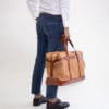 高級感のある本革を贅沢にライン使いしたハンドルは、中に芯を入れることでしっかりとした作りになっています。荷物の量やお好みに合わせて調整でき、アクセントにもなるベルト式。